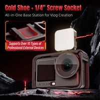 Engineered specifically for the DJI ACTION 6, this STARTRC plastic cage combines protective design with versatile accessory compatibility. The rigid full-body frame grips your camera securely, preventing movement during active use, whilst the top cold shoe welcomes microphones, LED lights, and phone clamps. Side magnetic quick-release ports and 1/4" threaded holes open up a world of mounting possibilities—attach suction cups, bike brackets, selfie sticks, and extensions with ease. Every control remains accessible: charge freely, adjust settings, monitor your screen, and access audio vents without any obstruction or risk of scratching. The clever left hollow section paired with a flip-open right cover lets you swap batteries and top up charge without ever removing the cage, keeping your workflow smooth and uninterrupted.