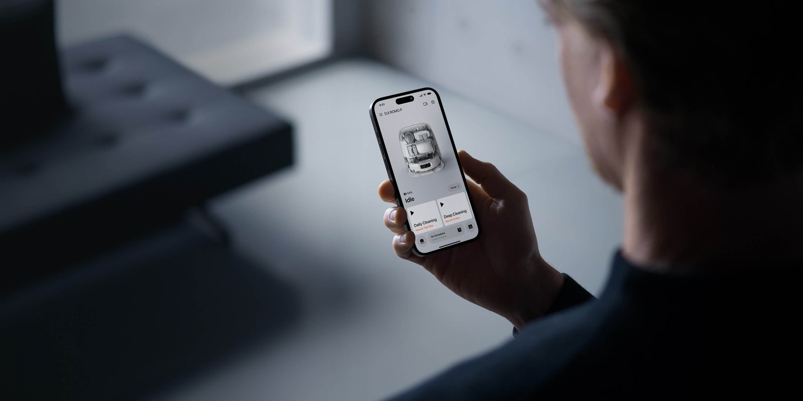 ROMO supports four cleaning modes: Vacuum & Mop , Vacuum, Mop, and Vacuum Then Mop. You can also create custom cleaning plans using the Cleaning Task on the DJI Home app home screen.